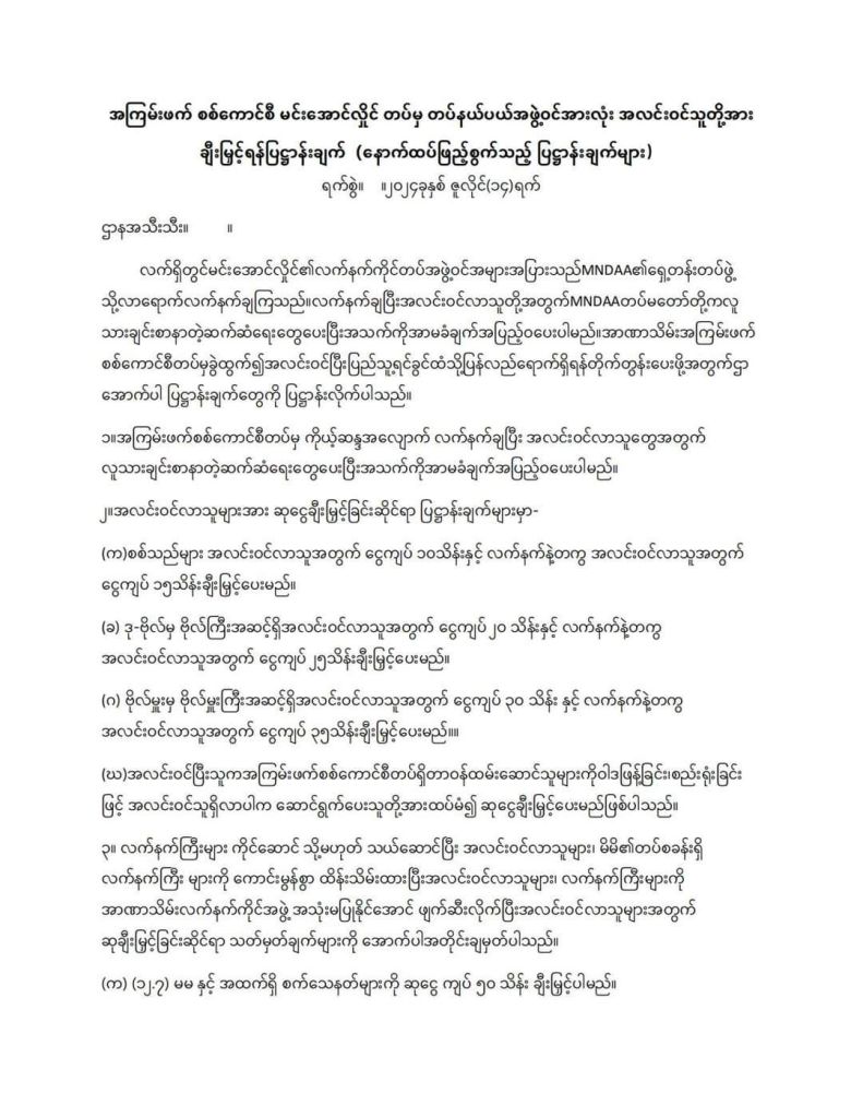 လေယာဉ် နဲ့ ဘက်ပြောင်း ခိုလှုံ ရင် ကျပ်ငွေ သိန်း တစ်ထောင် ထိ ဆုချီးမြှင့် မယ် လို့ ကိုးကန့် MNDAA အဖွဲ့ က ဒီကနေ့ ကြေငြာ ချက် ထုတ် လိုက်ပါတယ်။