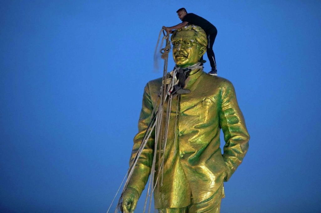 ပါကစ္စတန် လက်အောက် မှာ ရှိ တဲ့ အရှေ့ ပါကစ္စတန် ဘဝ ကနေ လွတ်မြောက် ဖို့ ဦးဆောင် လှုံ့ဆော် ခဲ့တဲ့ သူ့ ရဲ့ ဖခင် ရှိခ် မူဆီနာ ဟာဆီဘာ ရဲ့ နိုင်ငံ တဝှမ်း က ရုပ် တု တွေ ကို လည်း ဆန္ဒပြ သူ တွေ က ဖျက်ဆီး ခဲ့ ပါ တယ်။