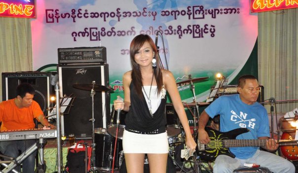 ရတနာပံုတယ္လီပို ့တြင္က်င္းပသည့္ ျမန္မာ အိုင္စီတီ ျပပြဲ ဖြင့္ပြဲတြင္ သီဆိုေဖ်ာ္ေျဖေနသည့္ အဆိုေတာ္ ဂ်င္းနီ ဓာတ္ပံု-လမင္းႏိုင္ Planet News