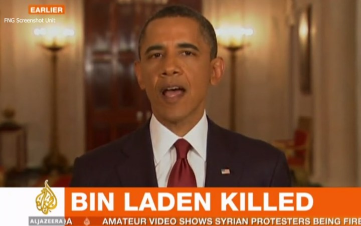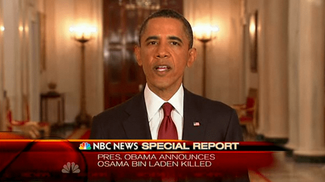 အိုစမာဘင္ လာဒင္ ေသဆံုးေၾကာင္း အိုဘာမားက အိမ္ျဖဴေတာ္ တြင္ သတင္းေထာက္ မ်ား ကို ေျပာၾကားေနစဥ္