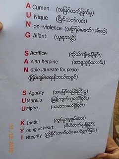 ျဖစ္သည္။ အတိ အက ်ဆို ရ လ ွ်င္ ၂၀၀၁ ခုႏွစ္ ဆန္းစ ေလာက္ တြင္ ျဖစ္ပါသည္။ Continue reading “ေဒၚေအာင္ဆန္းစုၾကည္ နဲ ့ ဗိုလ္ခ ် ဳပ္ ေတြ တစ္ခါ ေတြ ့ ရင္ ငါ့ မိန္းမ တစ္ခါ အ – ် ခံရ တာပဲ ။ ( True Story)”