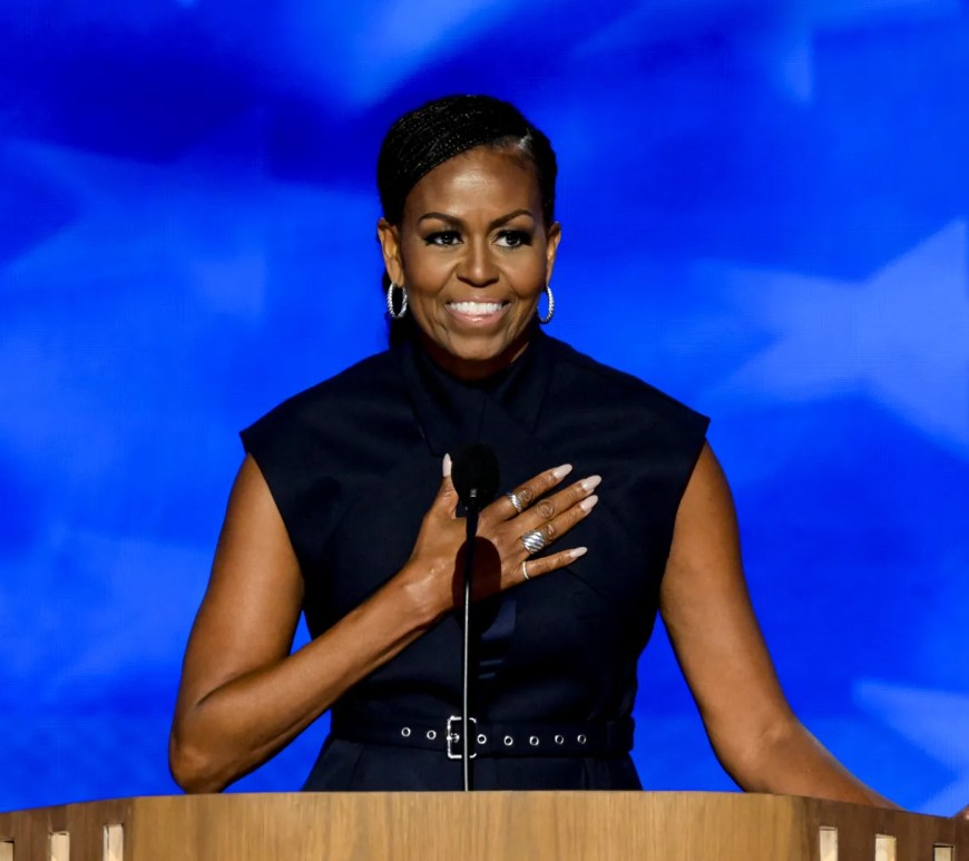ဓာတ်ပုံ က တော့ အီလီနွိုက်စ်ပြည်နယ်က ချီကာဂိုမြို့မှာပြုလုပ်နေတဲ့ ဒီမိုကရက်ပါတီ ညီလာခံ ရဲ့ တတိယ မြောက် နေ့ မှာ သမ္မတ ကတော် ဟောင်း မစ်ရှဲလ် အိုဘာမား က မိန့်ခွန်း ပြောကြား နေတာ ဖြစ်ပါတယ်။